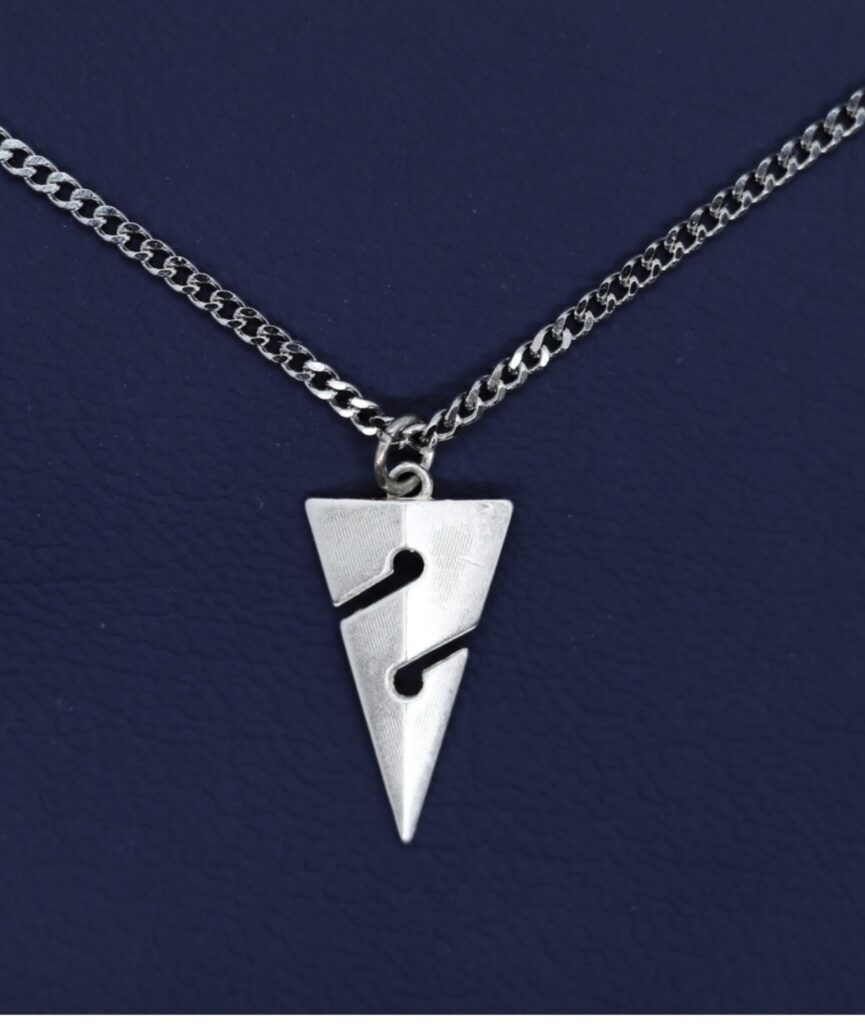 写真は、主に洞窟潜水や沈船潜水に於いて、命綱であるガイドラインに取り付けて出口の方向を示すために使用される重要な安全器具だそうですが、それをアクセサリーにしたものです。
